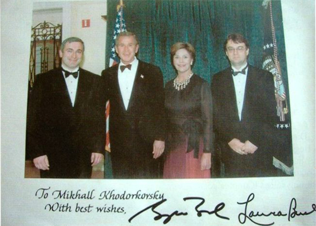 (Links: Khodorkowski, rechts naast hem George HW Bush)